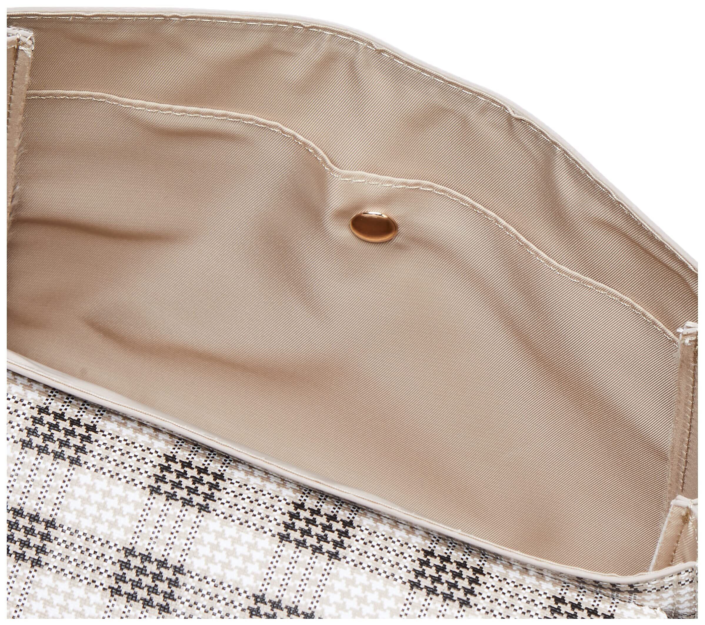 表はひねりの金具使いで上品に、裏のクリアポケットにはメッシュシートが付属しているので缶バッチなどが付けられます