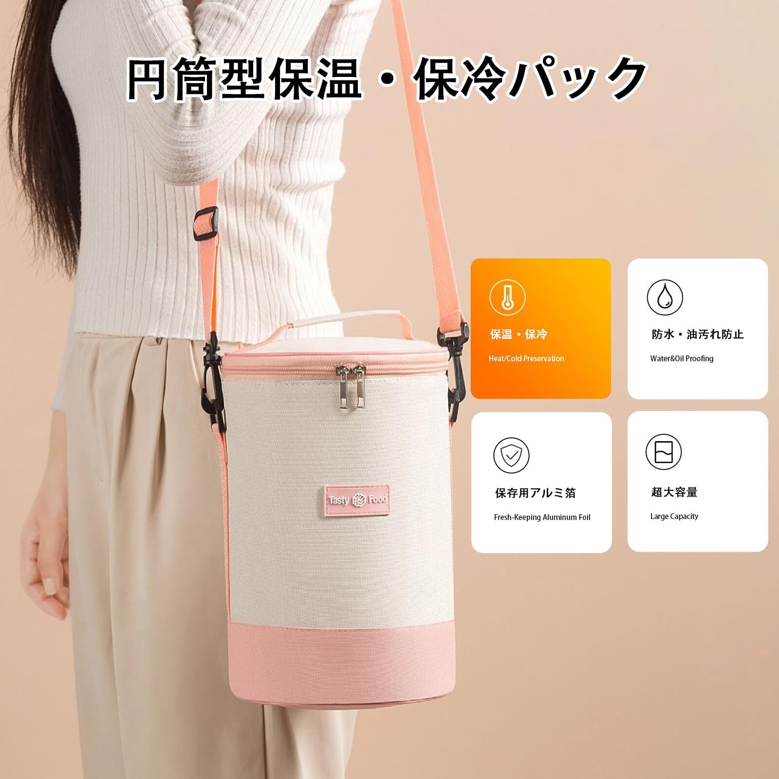 【3層断熱設計】このランチバッグは高密度オックスフォード生地、発泡ポリエチレン、アルミホイルを使用しており、断熱・保存効果が抜群です。食事を美味しく保温・保冷して持ち運ぶのに最適なアイテムです。