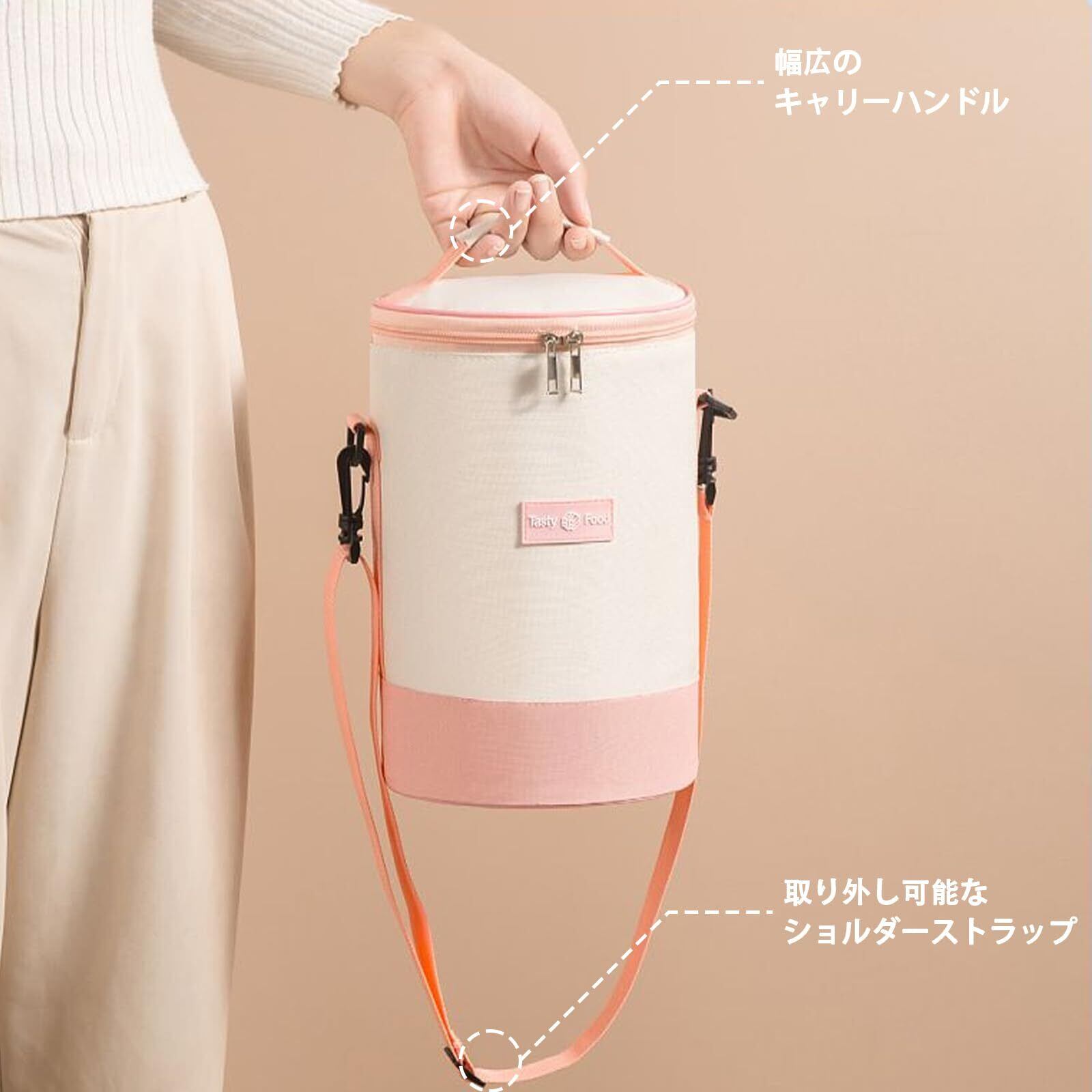 【携帯性】このランチバッグは、取り外し可能なショルダーストラップと幅広ハンドルが付いており、持ち運びが便利です。ランチタイムだけでなく、旅行やピクニックにも最適なアイテムです。